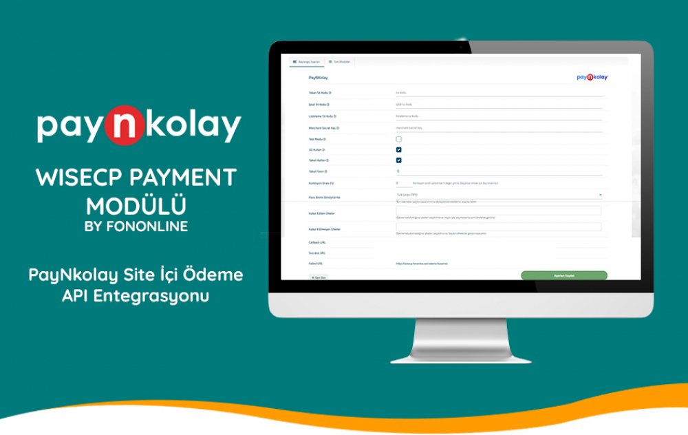Bu modül Fononline tarafından WiseCP Otomasyon Yazılımı için geliştirilmiş bir N Kolay (PayNKolay) sanal pos api entegrasyonudur.